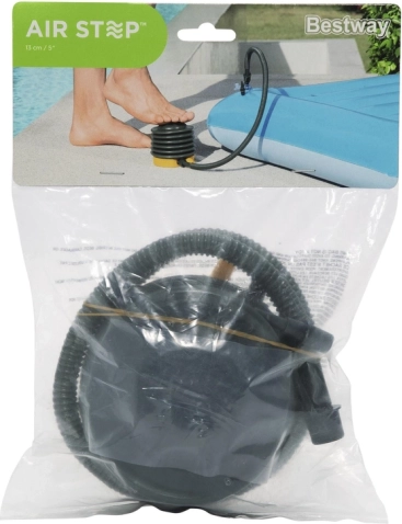 Praktična nožna pumpa BESTWAY visine 13 cm za brzo napuhavanje madraca, čamaca i igračaka. Nudi brzo napuhavanje, 3 zamjenjiva nastavka, fleksibilno crijevo i kompaktno, lagano izvedba. Izdržljiv materijal i zapremnina 500 cm³ (0,5 l) osiguravaju udobnu uporabu kod kuće i na putovanjima.