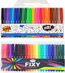 Otkrijte univerzalni set od 24 šarena flomastera koji će razveseliti male i velike stvaratelje. Zahvaljujući vlaknastom vrhu flomasteri se ugodno vode po papiru i pružaju glatku, intenzivnu liniju. Idealni su za skiciranje, bojanje i pisanje naslova.