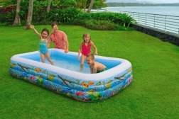 Uživajte u vodenim radostima s djecom ravno u svom vrtu! Na napuhavanje bazen s motivom podmorskog svijeta pruža dovoljno mjesta za cijelu obitelj.