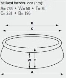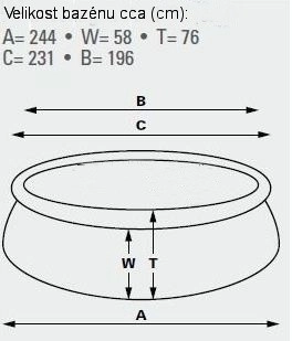 Samonastavni bazen. Dimenzije 183 cm (gornji opseg 145 cm) x 51 cm. Visina vodene površine 41 cm. Kapacitet 900 l.