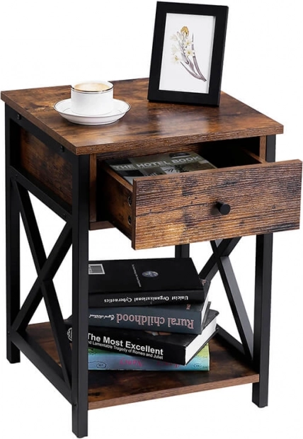 Ovaj rustikalni ormarić s ladicom idealan je izbor za vašu spavaću ili dnevnu sobu. Odličan je za odlaganje knjiga, budilica, tegli s cvijećem ili za izlaganje lijepo uokvirenih fotografija.