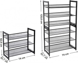 Zahvaljujući robusnom okviru od lakiranih željeznih cijevi stalak je stabilan, čvrst i otporan na vlagu i deformacije. Mrežaste police podupiru cirkulaciju zraka, pa se cipele brže suše i ne zadržavaju neugodne mirise. Trebate više mjesta? Dva stalka možete spojiti i dobiti 6 polica.