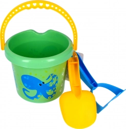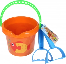 Praktičan set za pijesak za male graditelje sadrži kanticu, lopaticu i grabljice. Idealan za plažu i igralište, dostupan u 3 varijante boja – plava, zelena i narančasta.