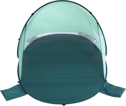 Dva prozora i stražnja mreža osiguravaju protok zraka. Džepovi za pijesak i klinovi drže šator stabilnim i pri vjetru.