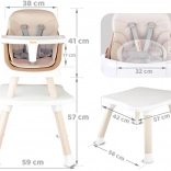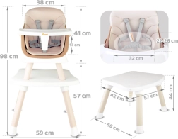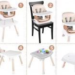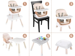 - 6 funkcija u jednom: visoka hranilica, nastavak za stolicu uz stol, niska hranilica s tacnom, hranilica sa stolićem, stolić s pločom za kocke, niski tabure