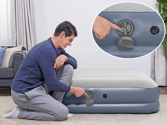 Ugrađena izmjenjiva akumulatorska pumpa puni se putem USB-a, napuhne madrac približno za 4 minute i na jedno potpuno punjenje omogućuje do dva napuhavanja. Gornja strana presvučena je mekim vinilnim materijalom za veći komfor i ugodan dodir.