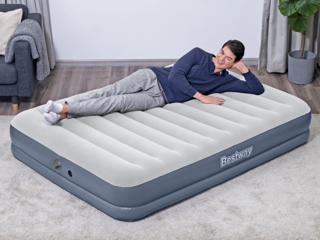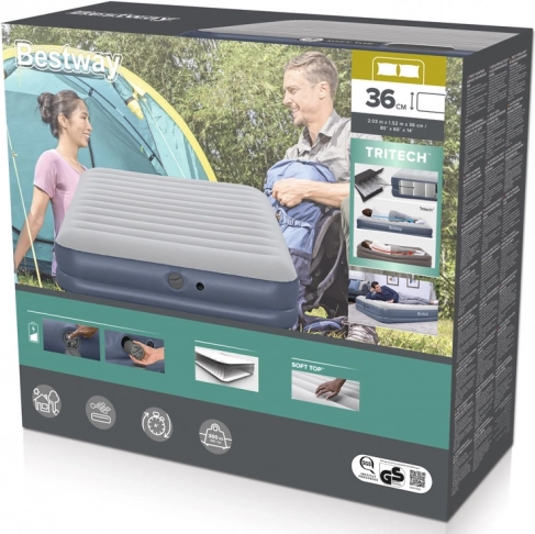 Dvoslojni napuhavajući madrac BESTWAY Tritech u veličini Queen nudi brzo napuhavanje, visoku stabilnost i dug vijek trajanja. Konstrukcija I-beam od materijala Tritech zadržava oblik i udobnost i pri ponovljenoj uporabi, dok ugrađena, izdrživa akumulatorska pumpa na USB osigurava praktičnost kod kuće i na putu.