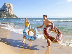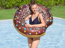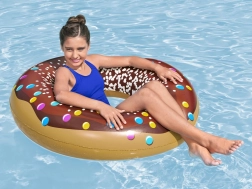 Ovaj stilski kolut u obliku zagrizenog donuta ističe se živim bojama i razigranim izgledom. Zahvaljujući promjeru od 107 cm pogodan je za odrasle i stariju djecu te pruža odličnu potporu pri odmoru na površini vode.