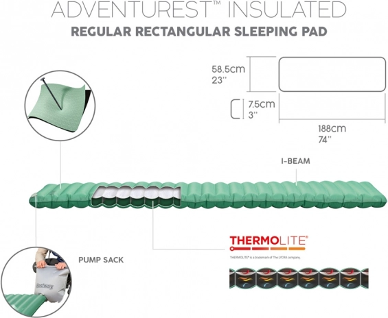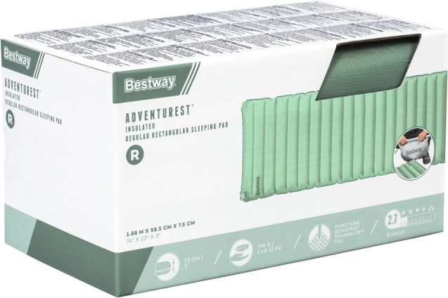 Nafukovajuća karimat Bestway AdventuRest kombinira udobnost i funkcionalnost, što je savršen izbor za noćenje u prirodi. Izrađena je od izdržljivog materijala ToughLite s ripstop tkaninom, koja štiti od prodora. Uključuje i izolacijski sloj ThermoLite koji osigurava lakoću i toplinu.