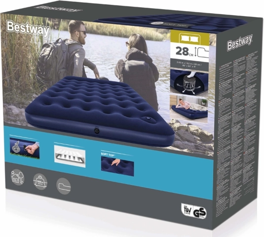 Praktičan i udoban zračni madrac za dvije osobe s dimenzijama 203 × 152 × 28 cm osigurava miran san kod kuće i na putovanjima. Zahvaljujući ugrađenoj nožnoj pumpi lako ga napuhnete bez struje, konstrukcija coil‑beam brine se za stabilnost, a integrirani jastuk i mekana vinilna površina povećavaju udobnost. Dvocestni ventil olakšava brzo napuhavanje i ispuhavanje.