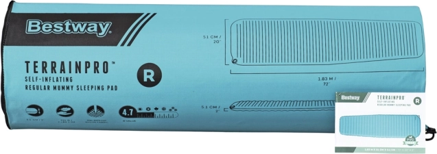 Tražite pouzdanu podlogu za kampiranje i outdoor avanture? BESTWAY TerrainPro je samonapuhavajuća podloga koja kombinira visoku izolaciju R 4,7, udobnu debljinu 5,1 cm i izdržljivu konstrukciju od ToughLite i 70D ripstop najlona. Pruža stabilnu potporu tijelu, izvrsno izolira od tla i kompatibilna je s uobičajenim mummy vrećama za spavanje.