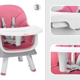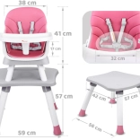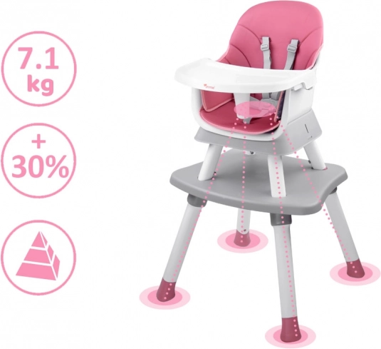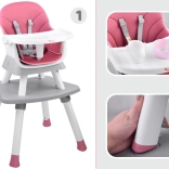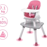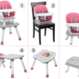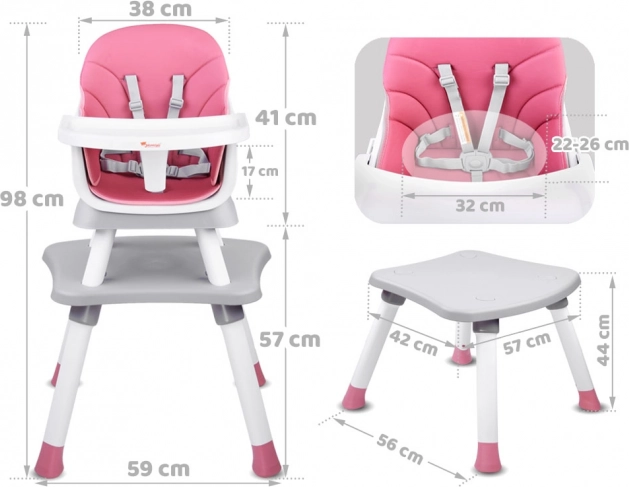 Multifunkcionalna dječja hranilica 6u1 za djecu od 6 mjeseci raste s vašim djetetom. Nudi visoko i nisko sjedenje, nastavak za blagovaonsku stolicu, stolić za igru i tabure. Ima 5-točkaste pojaseve, odvojivu i lako perivu plohu/stolić, protuklizne nogice i jednostavno za održavanje prozračnu presvlaku.