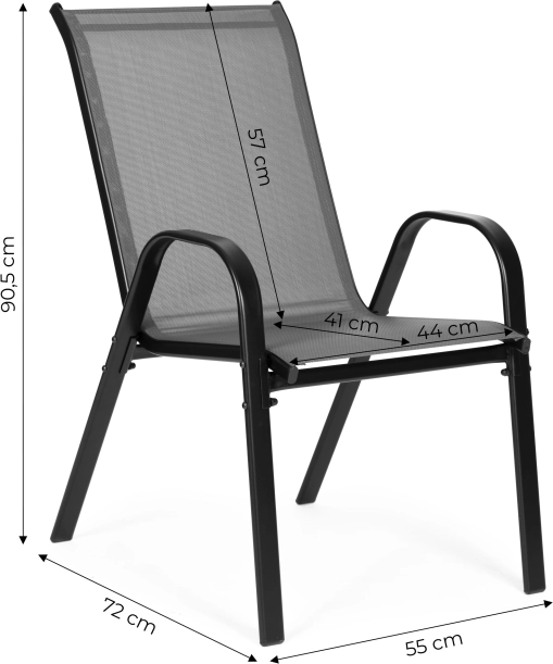 Sjedište i naslon od tekstilne mreže prilagođavaju se obliku tijela, nude visoku udobnost tijekom sjedenja i idealni su za vanjsku uporabu.