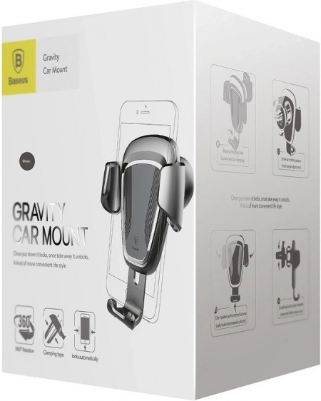 Uživajte u sigurnom i preglednom korištenju telefona tijekom vožnje. Gravitacijski mehanizam držača BASEUS pri umetanja telefona automatski se zatvara i čvrsto ga fiksira, dok mekane podstave štite uređaj od ogrebotina. Kompaktna konstrukcija u elegantnoj crnoj boji lako se postavlja na većinu ventilacijskih rešetki.