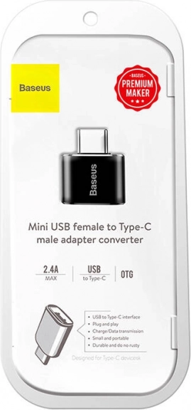 Kompaktan Baseus adapter pretvara konektor Micro USB u USB‑C i podržava OTG, brz prijenos podataka i punjenje do 2,4 A. Izdržljivo aluminijsko kućište u crnoj boji osigurava dug vijek trajanja i pouzdanu upotrebu s telefonima, tabletima i prijenosnicima s USB‑C.