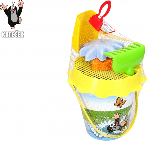 Dječji set za pijesak s omiljenim motivom KRTKO donosi sate zabave na otvorenom. Sadrži kanticu 1,5 l, sito, lopaticu, grabulje i 2 kalupa – idealno za gradnju dvoraca i pješčanih kolačića na igralištu i na plaži. Pogodno za djecu od 3 godine.