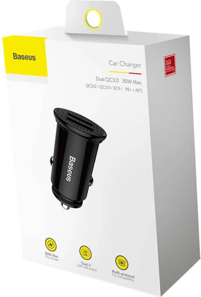 Baseus auto punjač 2x USB QC3.0 30W crni