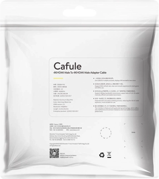 HDMI kabel Baseus Cafule idealan je izbor za televizore, monitore, projektore, konzole i računala. Osigurava kristalno čistu sliku u Ultra HD 4K pri 60 Hz i sinkroni prijenos višekanalnog zvuka. Zahvaljujući standardu HDMI 2.0 sa širinom pojasa 18 Gb/s uživat ćete u glatkoj reprodukciji filmova i igara bez trzanja i kašnjenja.