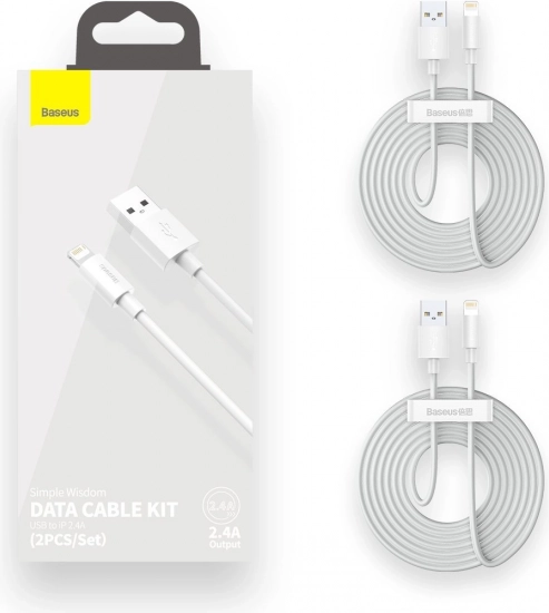Set podatkovnih kabela USB na Lightning Baseus Simple Wisdom idealno je rješenje za sve korisnike Apple uređaja. Kabeli duljine 1,5 m i podrškom za punjenje do 2,4 A su dizajnirani kako bi osigurali brzo i učinkovito punjenje.