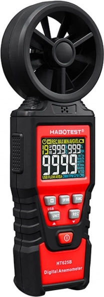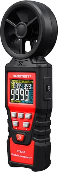 HABOTEST HT625B je pouzdan anemometar s osmerokrilnim rotorom i osjetljivim ležajnim senzorom za stabilna i brza mjerenja. Kolor zaslon visoke rezolucije prikazuje vrijednosti do 9999 countova, uključujući indikator baterije. Možete birati više jedinica brzine (m/s, km/h, mph, ft/s, čvorovi) i volumena zraka (CFM/CMM/CMS), pa uređaj lako prilagodite svojim radnim navikama.