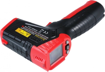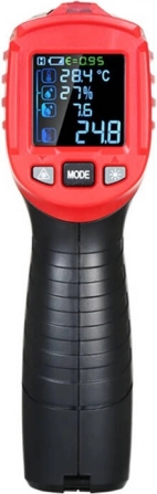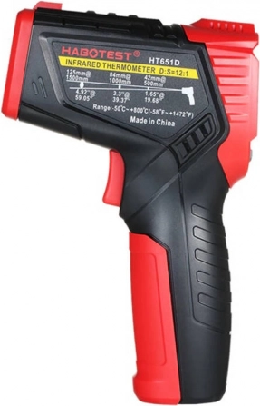 Infracrveni termometar Habotest HT651D jamči vrhunsku točnost mjerenja. Njime ne samo da ćete izmjeriti temperaturu određene točke, već ćete saznati i temperaturu okoline, rosište i relativnu vlažnost. Upravljenje olakšava i kolor zaslon, a priloženi termopar tipa K pruža još više mogućnosti. Termometar ima i funkciju alarma. Za napajanje je potrebna 9V baterija 6F22 koja se kupuje zasebno.