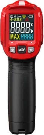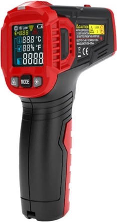Širok raspon -50 °C do 550 °C i omjer udaljenost:područje 12:1 omogućuju sigurnu kontrolu temperature vrućih i hladnih objekata – od kuhinje, preko provjere elektronike, HVAC-a i automobila do kućne dijagnostike toplinskih gubitaka. Tu je i alarm prekoračenja limita s crvenim LED indikatorom, zadržavanje podataka, MAX funkcija, pozadinsko osvjetljenje i automatsko isključivanje za uštedu baterije.