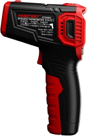 HABOTEST HT650B je pouzdan infracrveni toplomjer za brzo i higijensko mjerenje bez kontakta. Zahvaljujući 12-točkovnoj laserskoj indikaciji precizno definira područje mjerenja, a LCD zaslon u boji pregledno prikazuje trenutnu vrijednost, maksimum, stanje baterije i odabranu jedinicu. Emisivnost je postavljena na 0,95 za univerzalnu primjenu na većini površina.