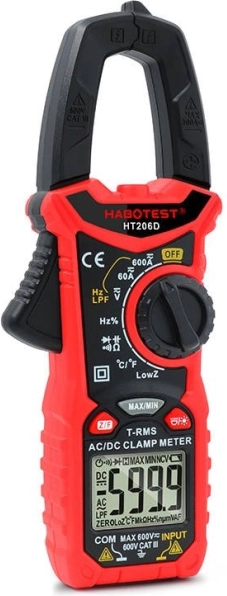 HABOTEST HT206D univerzalni je kliještni multimetar dizajniran za brzu i sigurnu dijagnostiku električnih instalacija. Podržava AC/DC napon do 600 V, AC/DC struju do 600 A, mjerenje otpora, kapaciteta, frekvencije, radnog ciklusa, temperature te nudi praktične funkcije MAX/MIN, Data Hold i automatsko isključivanje. Beskontaktna detekcija napona NCV sa zvučnom i svjetlosnom signalizacijom povećava sigurnost rada.