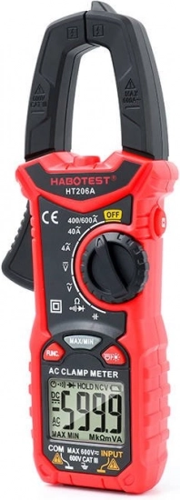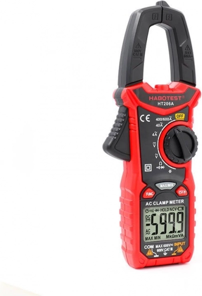 HABOTEST HT206A je univerzalni kliještni multimetar za svakodnevne servisne i instalacijske poslove. Dvobojni LCD zaslon s pozadinskim osvjetljenjem osigurava izvrsnu čitljivost, a pri prekoračenju 80 V ili 3 A zasvijetli narančasto za veću sigurnost. Zahvaljujući True RMS pruža precizne rezultate i kod nelinearnih opterećenja.