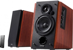 EDIFIER R1700BT elegantni su drveni zvučnici 2.0 koji spajaju moderne tehnologije s klasičnim izgledom. Ugrađeni DSP/DRC održavaju zvuk čistim i pri višim glasnoćama, dok prednji bass-reflex daje basovima dubinu i energiju. Zahvaljujući Bluetoothu u trenu uparujete telefon ili tablet.