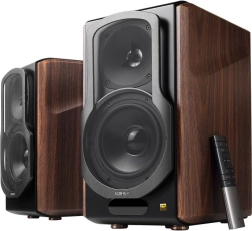 EDIFIER S2000MKIII su moderni 2.0 zvučnici za zahtjevnije slušanje kod kuće i u uredu. Drvena kućišta s bass-reflexom, kalotni visokotonac i snažan srednjebas osiguravaju uravnotežen i dinamičan zvuk s frekvencijskim odzivom 45 Hz – 40 kHz. Zahvaljujući Bluetoothu 5.0 s aptX HD uživat ćete u bežičnom streamingu visoke kvalitete bez prekida.