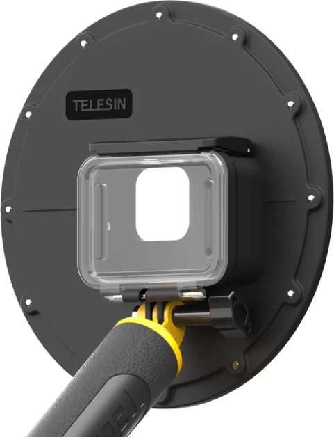 Telesin kućište savršen je dodatak za vašu akcijsku kameru GoPro. Dizajnirano je za jednostavnu uporabu s pristupačnim gumbom okidača i čvrstim protukliznim hvatom. Kućište omogućuje snimanje iznimno kvalitetnih kadrova zahvaljujući kupolastom dizajnu koji proširuje vidno polje na 180° i osigurava optimalnu vidljivost za fotografije i videozapise.