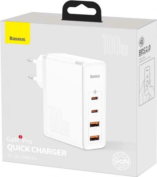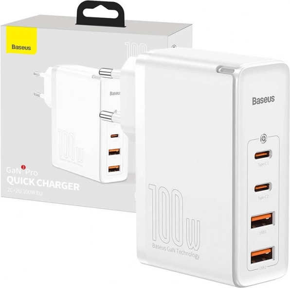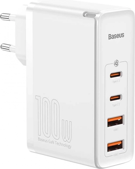 Kompaktan 4‑portni punjač BASEUS s tehnologijom GaN isporučuje do 100 W snage za brzo i sigurno punjenje. Istodobno napunite do 4 uređaja preko 2× USB‑C i 2× USB‑A, s inteligentnom raspodjelom snage, širokom kompatibilnošću i naprednom zaštitom od prenapona, preopterećenja i pregrijavanja.