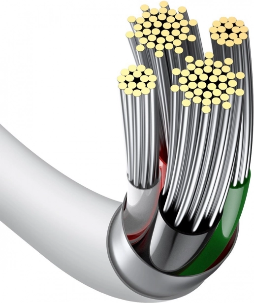 Kabel je izrađen od izdržljivih materijala (ABS + TPE) i ojačanih pocinčanih bakrenih vodiča. Pojačano područje kod konektora povećava trajnost pri čestom savijanju. U pakiranju se nalazi traka za lako spremanje bez zapetljavanja.