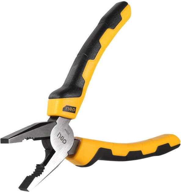 Kombinirana kliješta Deli Tools veličine 8" (200 mm) pouzdan su alat za radionicu i kućne popravke. Posebno oblikovane čeljusti omogućuju sigurno držanje materijala, krimpanje i precizan rez. Kovano tijelo od ugljičnog čelika 55C donosi visoku čvrstoću i otpornost na trošenje.