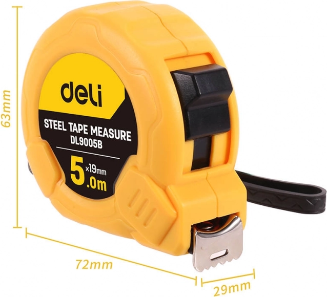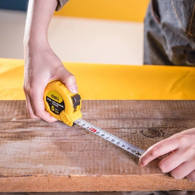Metar DELI dizajniran je za precizno i udobno mjerenje u interijeru i eksterijeru. Kruta čelična traka debljine 0,11 mm ostaje ravna i ne lomi se, pa lako postižete točne rezultate. Zahvaljujući automatskoj blokadi i glatkom uvlačenju, rad je siguran i intuitivan.