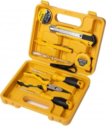 Set uključuje: nož s podesivom duljinom oštrice, 10 zamjenskih oštrica, 3m otpornu izolacijsku traku i 2m sklopivi metar. Također sadrži 2 odvijača s protukliznom drškom, kliješta od nehrđajućeg čelika i ispitivač napona otporan na koroziju za napon od 100-500 V.