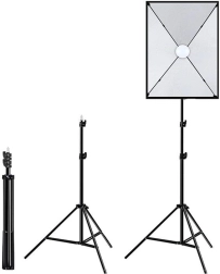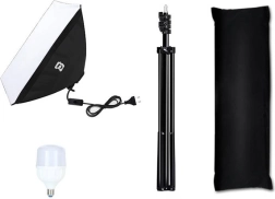 Set sadrži softbox dimenzija 50x70 cm izrađen od izdržljive reflektirajuće tkanine. Softbox s bijelim najlonskim sjenilom omekšava svjetlo i uklanja sjene, čime stvara ravnomjerno osvjetljenje. Jednostavno sklapanje i rasklapanje osigurava fleksibilnost pri korištenju.