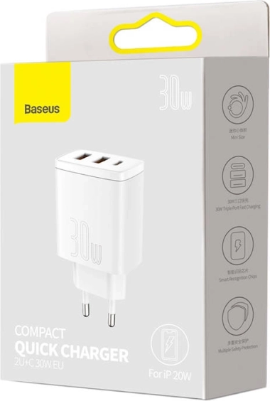 Tražite jedan punjač za sve svoje uređaje? Baseus kompaktni brzi punjač snage 30 W kombinira USB‑C i 2× USB‑A, pa bez problema punite telefon, tablet, slušalice i power bank istovremeno. Tehnologije PD 3.0 / QC 3.0 osiguravaju znatno brže punjenje kako biste se brže vratili u akciju.