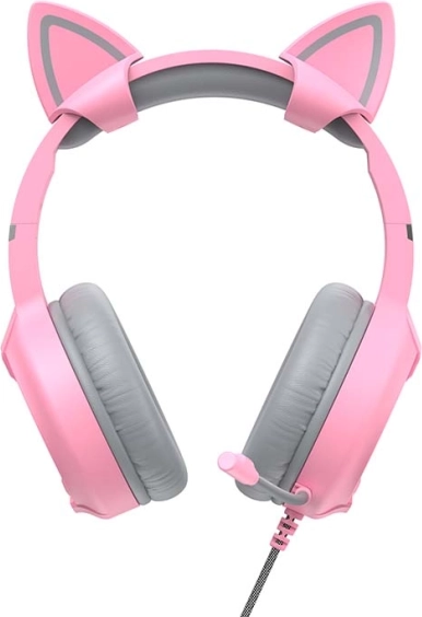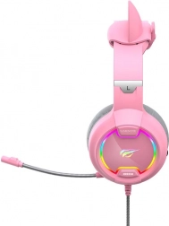 Havit Gamenote H2233D u ružičastoj boji nudi zabavan dizajn s odvojivim mačjim ušima i izraženim RGB efektom. Zahvaljujući velikim 50 mm driverima dobivate proširenu zvučnu scenu, poboljšane basove i detaljnu reprodukciju efekata za uranjajuće gaming iskustvo.