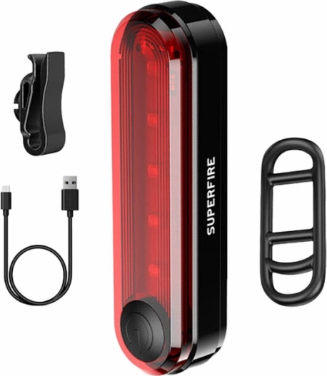 Budite s mirni na putu sa stražnjim svjetlom Superfire koje je dizajnirano za maksimalnu vidljivost. Četiri različita načina svjetla omogućavaju vam prilagodbu svjetline prema vlastitim potrebama. Zahvaljujući USB punjenju brzo je spremno za uporabu, a IP44 otpornost osigurava otpornost na kišu.