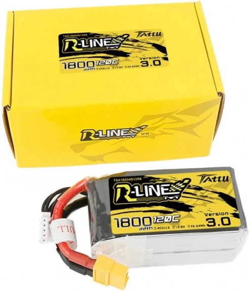 Baterija Tattu R-Line dizajnirana je posebno za visokoučinkovite primjene, poput dronova i RC modela. S kapacitetom od 1800 mAh i naponom od 14,8 V pruža pouzdano napajanje i dugotrajan učinak. Ova baterija s 4 ćelije i pražnjenjem od 120C savršen je izbor za one koji traže maksimalne performanse.