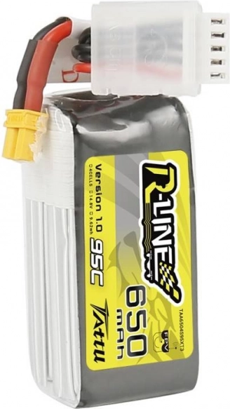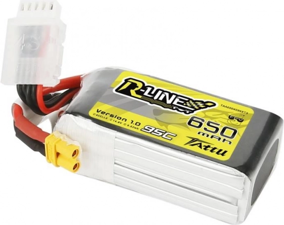 Tražite lagan, ali snažan izvor energije za FPV dronove? Tattu R-Line 650 mAh 14,8 V (4S) dizajnirana je za maksimalno opterećenje sa stalnom strujom pražnjenja 95C. Pruža brzo isporučivanje energije, minimalne padove napona i dulji vijek ćelija čak i pri dinamičnom letenju.