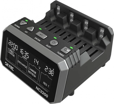 Snažan procesor Cortex‑M3 optimizira parametre u stvarnom vremenu i štiti ćelije pomoću naprednih sklopova. VA zaslon s visokim kontrastom prikazuje struju, kapacitet, napon i vrijeme, dok LED indikacija informira o tijeku u pojedinim utorima. Povezivanje preko Bluetootha i aplikacije SkyCharger daje vam detaljan pregled i kontrolu nad cijelim procesom.