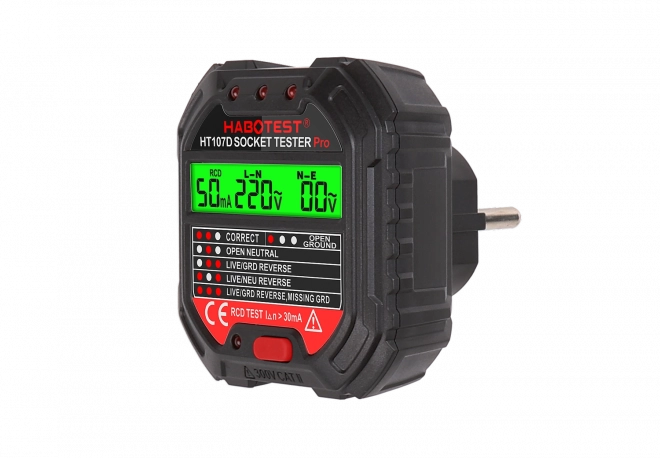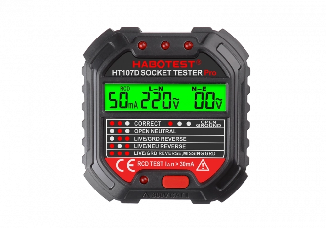 Osigurajte sigurnost i jasan uvid u stanje električnih utičnica. Tester HABOTEST HT107D nudi pregledan LCD zaslon s pozadinskim osvjetljenjem koji prikazuje trenutačni napon i rezultat testa ožičenja. LED indikatori na gornjoj strani jasno signaliziraju ispravno ožičenje, nedostajući zaštitni vodič, prekinuti neutralni vodič ili druge greške. Jednim pritiskom gumba možete izvršiti i funkcionalni test RCD.