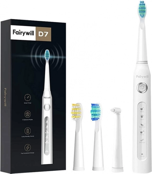 Zasjajte svima sa svojim blistavim osmijehom. Sonička četkica za zube FairyWill FW507 odobrila je ADA i generira vibracije do 40.000 u minuti te nudi 5 načina rada koje možete odabrati. Također je opremljena inteligentnim mjeračem vremena od 2 minute. Njena dugotrajna baterija osigurava do 30 dana korištenja s jednim punjenjem. Dolazi s izmjenjivim glavama.
