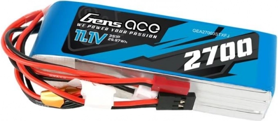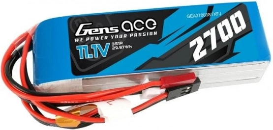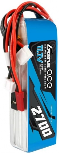 Baterija Gens Ace kapaciteta 2700mAh i napona 11.1V dizajnirana je za pouzdano napajanje daljinski upravljanih uređaja. S visokom izvedbom i konektorima FUTABA/JST-XHR-3P/JST-SYP savršen je izbor za modelare.