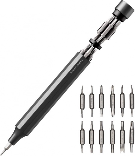 Odvijač HOTO opremljen je magnetskim vrhom za jednostavno umetanje i vađenje bitova. Ergonomski dizajn zatim osigurava udobnost pri radu bez klizanja. S težinom od samo 110 g i dimenzijama sličnim kemijskoj olovci, jednostavno je nositi ga bilo gdje.