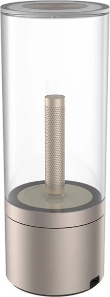 Upravljanje je intuitivno: okretanjem gornjeg dijela regulirate svjetlinu, a prekidačem na bazi birate režim plamena ili stalno svjetlo. Ugrađena baterija 2500 mAh traje do 100 sati na najnižoj svjetlini (oko 9,5 h na najvišoj), a punjenje se vrši putem USB‑C. Minimalističko kućište sa staklenim tijelom i metalnim detaljima uklapa se u svaki interijer.