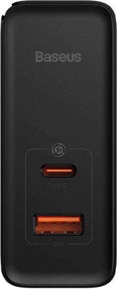 Zahvaljujući dvama priključcima USB‑A i USB‑C, Baseus GaN punjač omogućuje istodobno punjenje dvaju uređaja snagom do 65 W i 30 W.